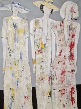 Nelle mie opere utilizzo acrilico e foglia d'oro per creare una scena di connessione ed eleganza. Le figure incarnano uno stile semi-astratto e figurativo che celebra l'unicità e la forza dell'amicizia femminile. Tocchi di colore accuratamente selezionati e sofisticate dorature creano una composizione armoniosa che crea in ogni ambiente un'atmosfera calda e accogliente, piena di vita ed energia positiva.