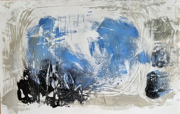 In quest'opera, ho giocato con un'energia potente e movimenti spontanei per esprimere sentimenti di libertà e profondità. La stampa monotipo mi permette di catturare la tensione tra struttura e casualità. Il colore blu simboleggia una calma speranza che si irradia dal caos dell'espressione. Quest'immagine conferisce un'atmosfera vivace e vibrante a qualsiasi ambiente.