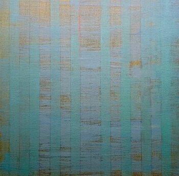 Questo dipinto utilizza il fondo di lino grezzo come colore, lasciando il substrato esposto alla vista. I toni caldi e freddi del blu interagiscono tra loro e con il fondo grezzo. Il risultato è una qualità eterea che incoraggia l'osservatore a soffermarsi a osservare il dipinto.