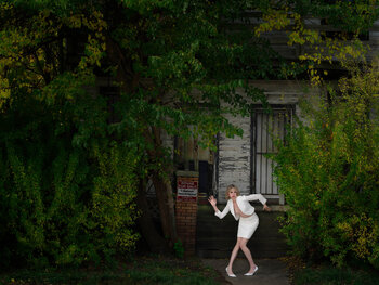 In questa fotografia digitale di strada, catturo l'attimo nascosto e inatteso. La figura vestita di un bianco radioso si staglia vividamente contro il paesaggio lussureggiante e scuro, come sospesa tra libertà e incertezza. Ho voluto rappresentare questa tensione che lega l'ignoto alla curiosità umana, per infondere nel vostro spazio un'energia misteriosa e vibrante.