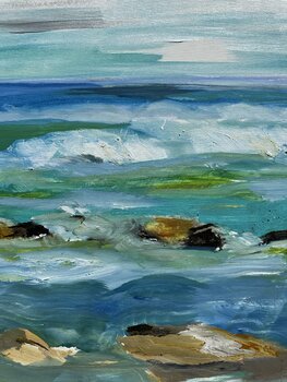 In questo lavoro utilizzo gli acrilici per catturare la vibrante essenza del mare. Il mio stile è in equilibrio tra l'espressionismo e il semi-astratto, giustapponendo la serenità e la forza delle onde che si infrangono. Ogni pennellata riflette un'emozione profonda, cercando di evocare la pace e la maestosità dell'oceano in chi lo osserva. Ideale per fornire un'energia calmante e allo stesso tempo stimolante a qualsiasi spazio.