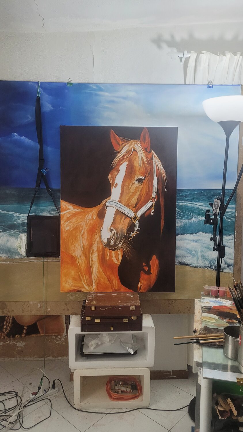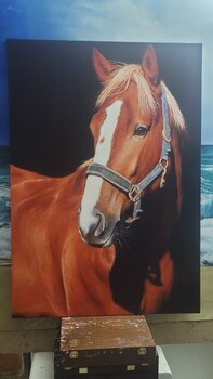 Quest'opera è una celebrazione della nobiltà e della forza, distillate nell'immagine di questo maestoso cavallo. Ho usato colori ad olio per catturare la consistenza morbida della sua pelliccia e la calma intensità del suo sguardo, evocando una profonda connessione con la natura. Ogni pennellata è intrisa della mia ammirazione per questi esseri viventi che incarnano bellezza e libertà. Portando questo dipinto nella tua casa, inviterai l'essenza di… questi valori senza tempo e uno spirito di eleganza senza tempo.