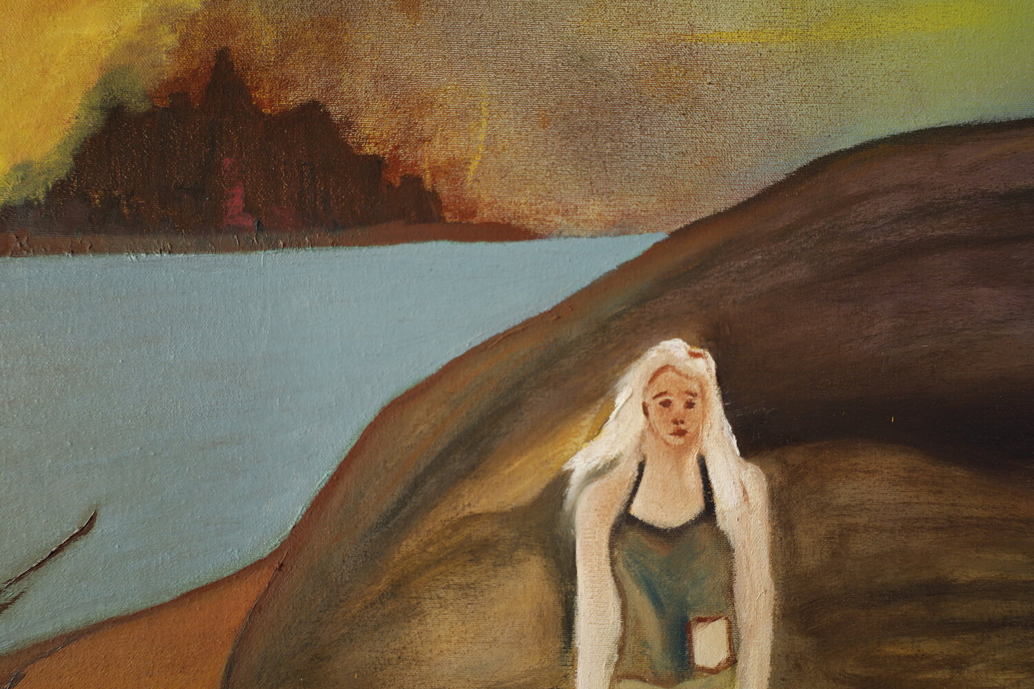 In quest'opera, utilizzo la pittura a olio per fondere l'estetica vibrante dei fumetti con un'inquietante scena di distruzione. L'immagine ritrae una figura solitaria in un paesaggio desolato, a simboleggiare resilienza e speranza nel mezzo delle avversità. I colori infuocati e gli alberi spogli enfatizzano l'atmosfera caotica che segue la distruzione. Catturo non solo un momento di contemplazione, ma anche un invito a riflettere sulle lotte di potere… intestine dell'umanità.
