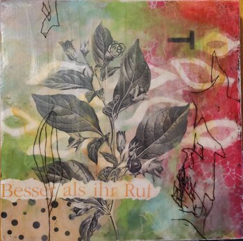 Nel mio lavoro Dangerous Beauties fondo emozioni intense e profondo simbolismo. Utilizzando un mix di acrilico, olio e collage, apro un dialogo visivo tra la bellezza e i pericoli nascosti della natura. Le tecniche utilizzate, come la stampa in rilievo e la vernice spray, conferiscono a ogni foglia e fiore una consistenza e una drammaticità forti. Questo dipinto appartiene a uno spazio che incoraggia la riflessione e il pensiero più profondo mentre… cattura la tensione estetica e la potente attrazione della natura.