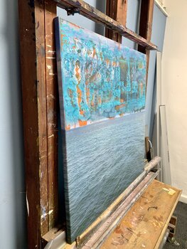 Nel mio lavoro artistico, l'attenzione è sempre rivolta ai processi produttivi, con le loro indagini, sperimentazioni e ripetizioni, slegati da un risultato concreto. Molte piccole decisioni riguardanti la superficie pittorica, il materiale, il movimento e gli strumenti consentono trasformazioni che aprono uno spazio di esperienza e comprensione che è diventato per me esistenziale. Questo spazio mi permette di essere presente e consapevole nel momento, di esplorare giocosamente l'interazione tra controllo e abbandono, e di rendere visibile il passare del tempo attraverso le tracce delle singole fasi del processo nell'opera d'arte. Il mio amore per il Mar Baltico mi ha portato alla conservazione marina, che affronto e sostengo nel mio lavoro artistico. Mi interessa un approccio diverso a queste problematiche, che ci permetta di riconnetterci con il mare in modo protettivo.