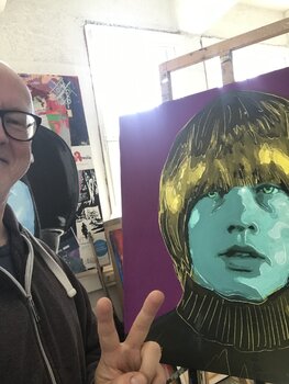 Brian Jones era un musicista britannico. Come chitarrista solista, è stato uno dei membri fondatori dei Rolling Stones. L'immagine è per metà analogica e per metà dipinta digitalmente, quindi assemblata digitalmente su tela, montata su un telaio a barella di 4 cm di spessore e una robusta croce di legno sul retro, rifinita con vernice acrilica. Fasi / metodo di lavoro: analogico, digitale, analogico. Unico.