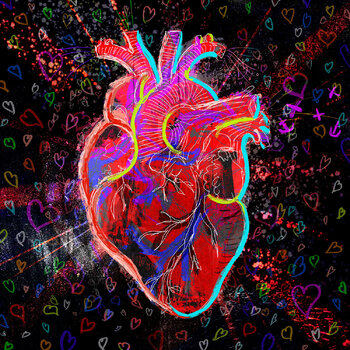 Gioia creativa, il cuore balza in tutte le direzioni. È sempre emozionante iniziare un nuovo lavoro, prima una versione vaga di ciò che vuoi creare emerge nella tua testa e poi ... è chiaro davanti a te e devi metterlo su carta, tela, ecc È davvero una gioia creativa! L'immagine è per metà analogica e per metà dipinta digitalmente, quindi assemblata digitalmente su tela, montata su un telaio a barella di 4 cm di spessore e una croce di legno stabile… sul retro, rifinita con vernice acrilica. Fasi / metodo di lavoro: analogico, digitale, analogico. Unico.