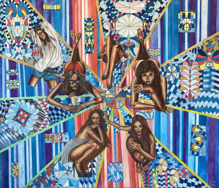 In questa vivida tela ad olio, ho intrecciato le emozioni con la geometria, creando un'espressione semi-astratta che gioca con la percezione. Le figure, colte in pose introspettive tra motivi vibranti e caleidoscopici, invitano l'osservatore in un personale regno di contemplazione. Ogni pennellata incarna la passione, esortando gli spettatori a esplorare le profondità dell'introspezione umana. Questo pezzo non è solo un'esperienza visiva: pulsa di… un'energia che infonderà qualsiasi spazio con intensità dinamica e fascino stimolante.
