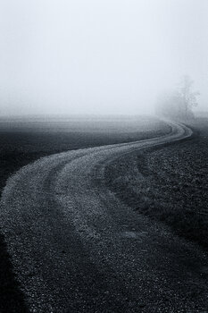 Come creatore di quest'opera, ho catturato l'essenza enigmatica di un viaggio nebbioso attraverso una lente monocromatica. Il percorso tortuoso invita gli spettatori in un mondo avvolto nel mistero, spingendoli a riflettere sulla bellezza dell'ignoto. È una metafora visiva delle incertezze della vita, ma evoca uno stato d'animo sereno e contemplativo. Abbellindo la tua casa, offrirà una dose quotidiana di intrigo e la tranquillità di un paesaggio… silenzioso e carico di nebbia.