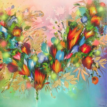 Con vibranti esplosioni di colore e una danza di texture, ho infuso nella mia tela l'essenza di un rigoglioso e musicale giardino estivo. Gli acrilici e gli spray si fondono… in armonia, mentre i tratti dorati aggiungono fantasia. È una sinfonia astratta, che invita lo spettatore a una celebrazione di crescita e gioia. Questo pezzo promette di irradiare energia e positività, trasformando qualsiasi spazio in un santuario di emozioni ispirate.
