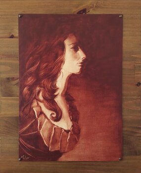 Le pennellate e la tavolozza dei colori monocromatici giocano su luci e ombre per evocare un senso di mistero e profondità. È sia una figura simbolica che una rappresentazione figurativa, un invito allo spettatore a esplorare le emozioni umane universali.