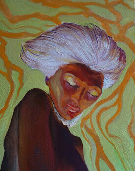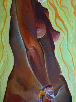 La figura simbolica evoca le lotte e la resilienza inerenti all'esperienza umana. I toni infuocati e i contorni fluidi invitano alla riflessione sulla forza interiore e sulla bellezza della vulnerabilità.