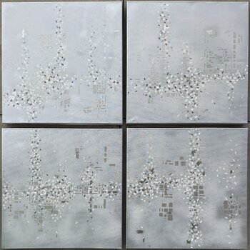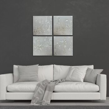 La composizione è definita dalla precisione.… Ogni pannello introduce una leggera modifica che arricchisce la struttura complessiva senza romperne la coerenza. Il quadrittico conferisce un'energia pulita e contemporanea allo spazio, aggiungendo un senso di movimento organizzato, texture raffinata e illuminazione equilibrata.