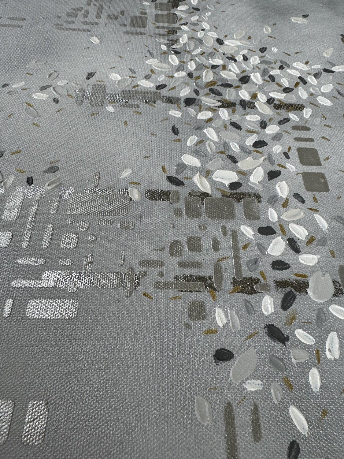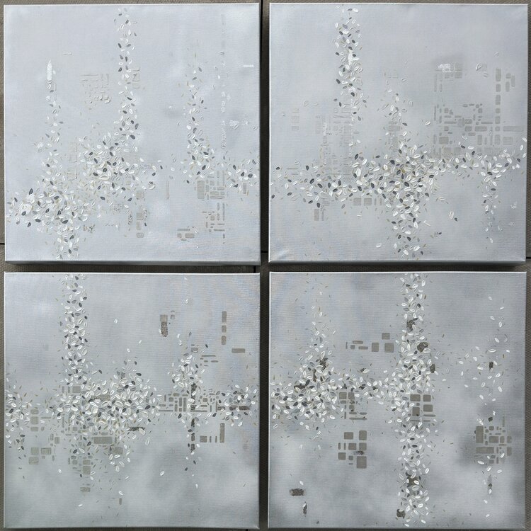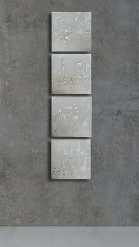Questo quadrittico esamina il movimento del pensiero attraverso la microstruttura e la ripetizione controllata. Piccoli elementi scolpiti creano un pattern mutevole che ricorda il modo in cui i pensieri si formano, si riorganizzano e si allineano nel tempo. I pannelli mantengono la chiarezza pur consentendo sottili variazioni, riflettendo un silenzioso movimento interiore all'interno di un sistema ordinato.