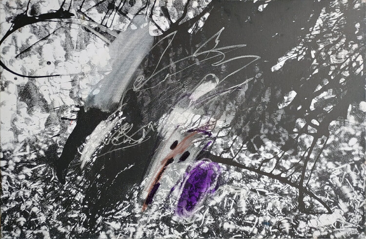 In quest'opera, ho creato una dinamica espressiva dal vivo sul palco, sulle note di musica punk, utilizzando colori acrilici, collage e gesso. Caos e tranquillità vengono catturati simultaneamente. Le forme astratte riflettono le mie tensioni e la mia energia interiore, ricordando il collage di una colonia di formiche. Conferisce un'atmosfera potente e vibrante a qualsiasi stanza e invita a lasciare che le emozioni fluiscano liberamente e a scoprire… continuamente qualcosa di nuovo.