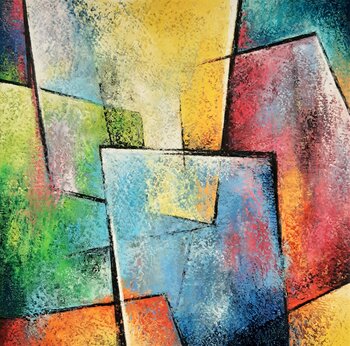 Nella creazione di quest'opera d'arte ho lavorato con colori ad olio per creare una composizione geometrica che irradia dinamismo ed energia. Colori vivaci e linee decise interagiscono per trasmettere una sensazione di movimento e armonia. Ha lo scopo di ispirare lo spettatore e portare una presenza vibrante ed emotiva in ogni stanza. Il mio obiettivo era creare una sinfonia visiva che stimolasse la mente e riscaldasse l'anima.