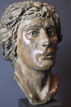 Ho voluto catturare nel bronzo il volto, al tempo stesso sensibile, sensuale e tragico, di Antinoo, amante dell'imperatore Adriano e suicida all'età di 20 anni. Questa scultura interroga la fragilità dell'essere umano.