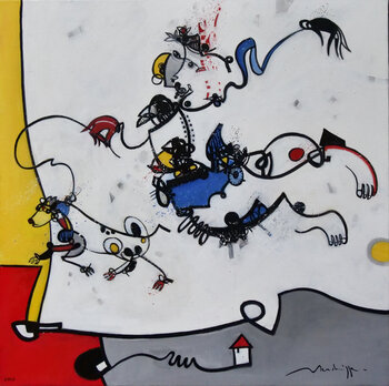 In quest'opera catturo l'essenza vibrante della pop art mescolata a elementi surreali e simbolici. Il cane, esuberante e dinamico, si trasforma in un energico balletto di forme e colori, esplorando i concetti di libertà e gioia. Ogni tratto e colore è stato concepito per evocare una risposta emotiva, infondendo una scintilla di vita ed energia in ogni spazio. La mia intenzione era quella di celebrare la spontaneità e la spensieratezza.