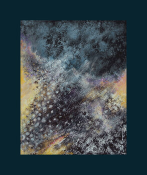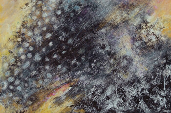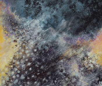 Questa pittura astratta evoca un'esplosione di elementi naturali, come un fuoco ardente, dalla giustapposizione di più strati di colori.