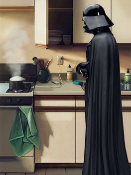 In questo lavoro, ho immerso Darth Vader nella vita di tutti i giorni, orchestrando una scena surreale in cui scopriamo un sorprendente contrasto tra il suo personaggio iconico e un compito banale come cucinare. Questo scontro visivo non è solo divertente, ma provoca una riflessione sulle molteplici sfaccettature dell'identità e sui paradossi della vita. Integrando questo personaggio in una scena di vita ordinaria, invito una riflessione più profonda… sulla complessità delle figure che idolatriamo o temiamo, aggiungendo un tocco di umorismo e leggerezza al tuo spazio.