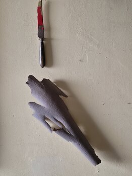 In quest'opera, ho voluto catturare la fragile tensione tra ciò che è naturale e ciò che è plasmato dall'uomo. Il coltello, un oggetto affilato e artificiale, contrasta con questo pezzo di legno quasi vivo, evocando la dualità della nostra esistenza. Quest'opera infonderà nei vostri interni una profonda riflessione e un'atmosfera al tempo stesso cruda e poetica.