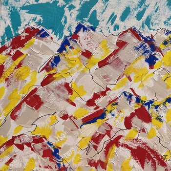 Questa opera d'arte cattura l'essenza dell'ambiente alpino in cui Jennifer ha scelto di vivere in questo momento. La sua vicinanza alle montagne conferisce gravità e radicamento alla sua vita quotidiana, eppure è l'essenza e l'aspetto più solare delle montagne che affascinano il suo spirito. Quando la luce del sole abbaglia l'occhio e cattura lo spirito non si può essere tristi per troppo tempo. Segni audaci e astrazione gestuale insieme all'uso… di colori primari mantengono l'immagine semplice, diretta e tuttavia audace.