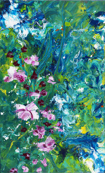 giochi di colori, tecniche diverse, sfondi in vernici fluide e fiori