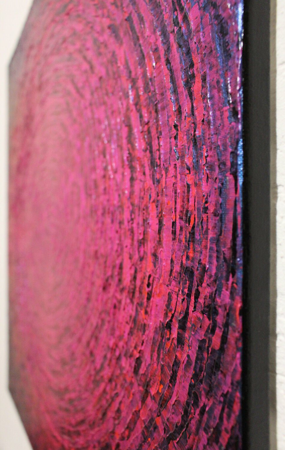 Bordi della tela dipinti con vernice acrilica nera.