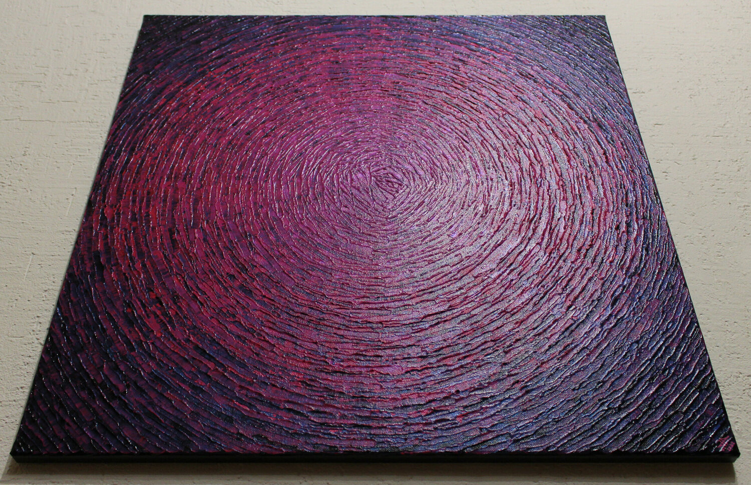 Lavoro eseguito con coltello in pittura acrilica su telaio di legno ricoperto di cotone (100% cotone).