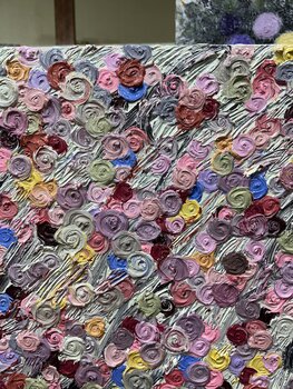 Questa creazione è una danza di oli, un vibrante arazzo di emozioni. Con pennellate astratte, ho intrecciato forme semi-astratte, catturando l'essenza di un giardino in fiore. Ogni vortice e ogni texture riecheggiano un battito cardiaco, un momento della ricca tavolozza della vita. Quest'opera respira la profondità della bellezza della natura, progettata per infondere a qualsiasi spazio un'energia dinamica e fiorente. È un'ode alla vitalità e alla… bellezza transitoria dell'esistenza.
