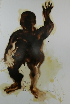 disegno realizzato su carta da 300 gr. con diversi tipi di vernice sintetica, maté e lucida. Quest'opera viene spedita srotolata e sarebbe conveniente incorniciarla a destinazione con il vetro, insieme ai cataloghi delle opere delle ultime mostre vengono inviati