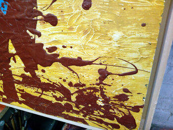 dipinto eseguito con tecnica mista, una miscela di pigmenti di vernice e colla spruzzata su tavola forma la sagoma screpolata del Toro di Osborne. È protetto da un semplice telaio in legno. Quest'opera faceva parte della mostra di pittura e scultura "El toro bravo" a Salamanca. Invio dei cataloghi delle ultime mostre