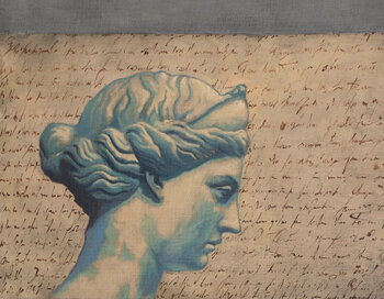 Testo, tipografia, comunicazione ... La figura di una scultura classica, come essere umano, simbolo di pensiero, di intelligenza.