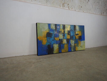 Dimensioni: la tela è tesa su barre di legno profonde 4 cm, quindi la dimensione totale di questo pezzo è 105x50x4 cm.