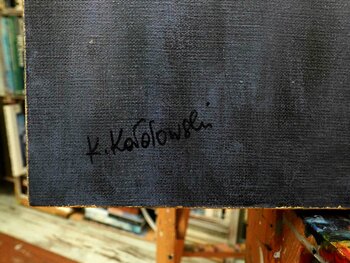 Il dipinto è stato realizzato nell'ambito della serie "Ballo di Ognissanti". Rappresenta un uomo, un ballerino, che si riposa tra una prova e l'altra. Evoca l'impegno artistico dell'uomo per realizzare la migliore performance. Tuttavia, è anche aperto a diverse interpretazioni, poiché potrebbe essere… semplicemente stanco o addirittura mentalmente in difficoltà. Il dipinto è stato dipinto con acrilico e con l'aggiunta di una foglia di alluminio.