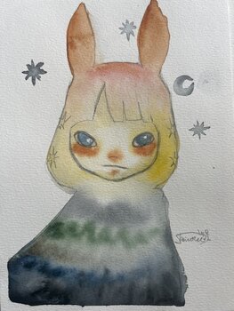Un appassionato d'arte, acquisto effettuato nel mese di novembre 2025: "A Rabbit Girl", Acquarello, Matita su Carta , 8,3x5,9in
