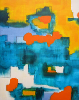 Queste opere sono state create alla fine del 2024 con una selezione di colori che mi sollevano l'umore e mi fanno guardare positivamente avanti. Per me, i vivaci toni del blu, permeati da intensi accenti gialli e arancioni, sono energie cromatiche che irradiano ottimismo e danno forza. Il mio obiettivo era creare un lavoro emotivo che potesse essere visto e sentito. Poiché ha senso concentrarsi sulle cose positive del qui e ora, mi sono immerso completamente… nella creazione di queste due opere d'arte senza soffermarmi sui pensieri, sulle preoccupazioni e sulle crisi della vita. Lavorando con la mia arte, le energie cromatiche e le diverse tecniche, posso sempre portarmi in uno stato di calma.