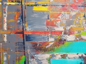 Kerstin Sokoll lavora con materiali per pittura classici, colori acrilici pastosi su tela,… che trasforma in sculture bidimensionali uniche con grandi racle e spatole.