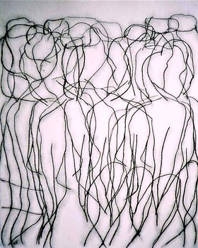 Opera di libero espressionismo incentrata sulla modella femminile; contiene studi sovrapposti che creano una sorta di "pezzo di conversazione". Una composizione molto vibrante che fonde elementi di espressione lineare e surrealismo.