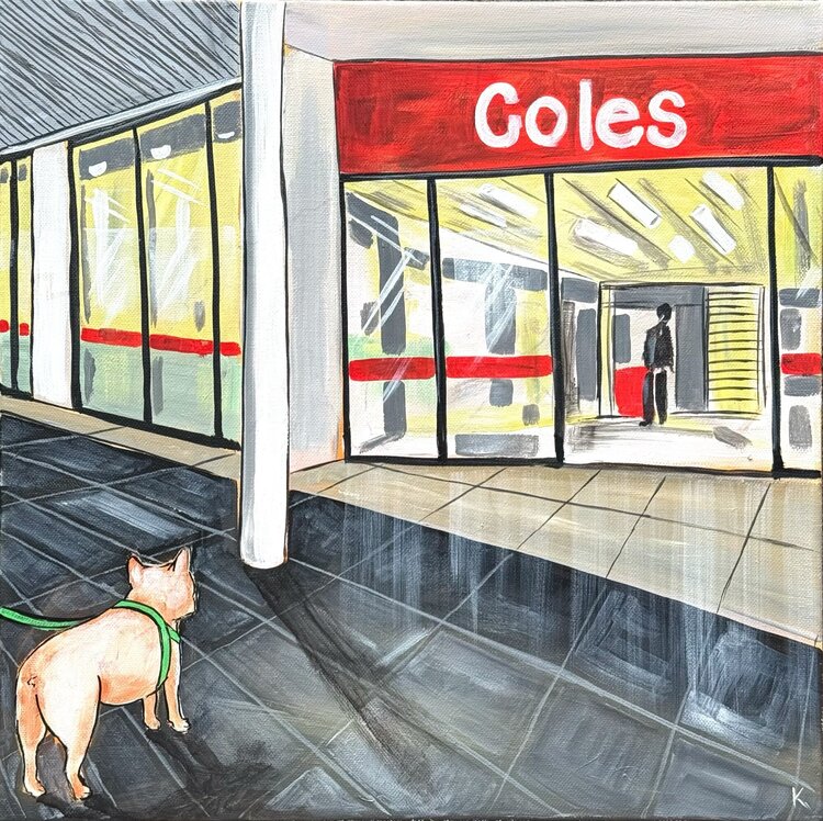 In attesa con silenziosa fedeltà, questo cane se ne sta fuori dal mio Coles locale, con gli occhi fissi sull'ingresso, in paziente attesa del suo umano. Ispirato da un momento reale a cui ho assistito, in cui la quiete la diceva lunga.