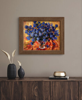 Sono sempre stata colpita da questi due colori vivaci e contrastanti: l'arancione e il blu. Il lillà americano, che fiorisce solo in primavera, è un fiore che ho atteso a lungo per cogliere qualche ramo profumato e immortalarlo sulla mia tela, perché solleva l'umore e anche quando la sua fioritura è finita, la primavera rimane con te per sempre, regalandoti un sorriso.
