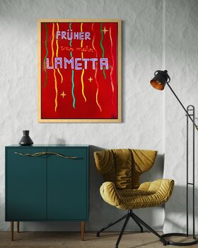 Grazie all'intensità del colore e al testo iconico, funziona sia come elemento distintivo negli spazi abitativi sia come elemento distintivo nelle gallerie.