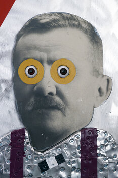 In questa opera, ho esplorato la fusione di materiali come alluminio, legno ed una antica fotografia, creando un assemblaggio unico che sfida la percezione convenzionale. L'uso di oggetti tridimensionali arricchisce la composizione, mentre il contrasto visivo dei colori e delle texture invita a una riflessione sulla complessità delle emozioni umane e sulle sorprese inaspettate della vita. Il soggetto, una sorta di prete , riflette sul senso della… vita e della religione davanti all'arrivo di un meteorite e alla imminente catastrofe. l'opera è realizzata su una spessa lastra di alluminio pronta per essere appesa al muro.