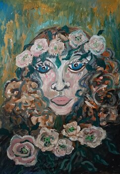 In questo lavoro ho voluto catturare la forza e la delicatezza insieme, fondendo espressionismo e dettagli orientali. Il volto avvolto da rose bianche simboleggia purezza e mistero, mentre i colori vibranti trasmettono un’energia intensa e vitale. Ogni pennellata dona al volto uno sguardo profondo che invita a riflettere e a sentire la bellezza nascosta dietro la superficie. Questo dipinto porterà un tocco emotivo e raffinato alla vostra casa.