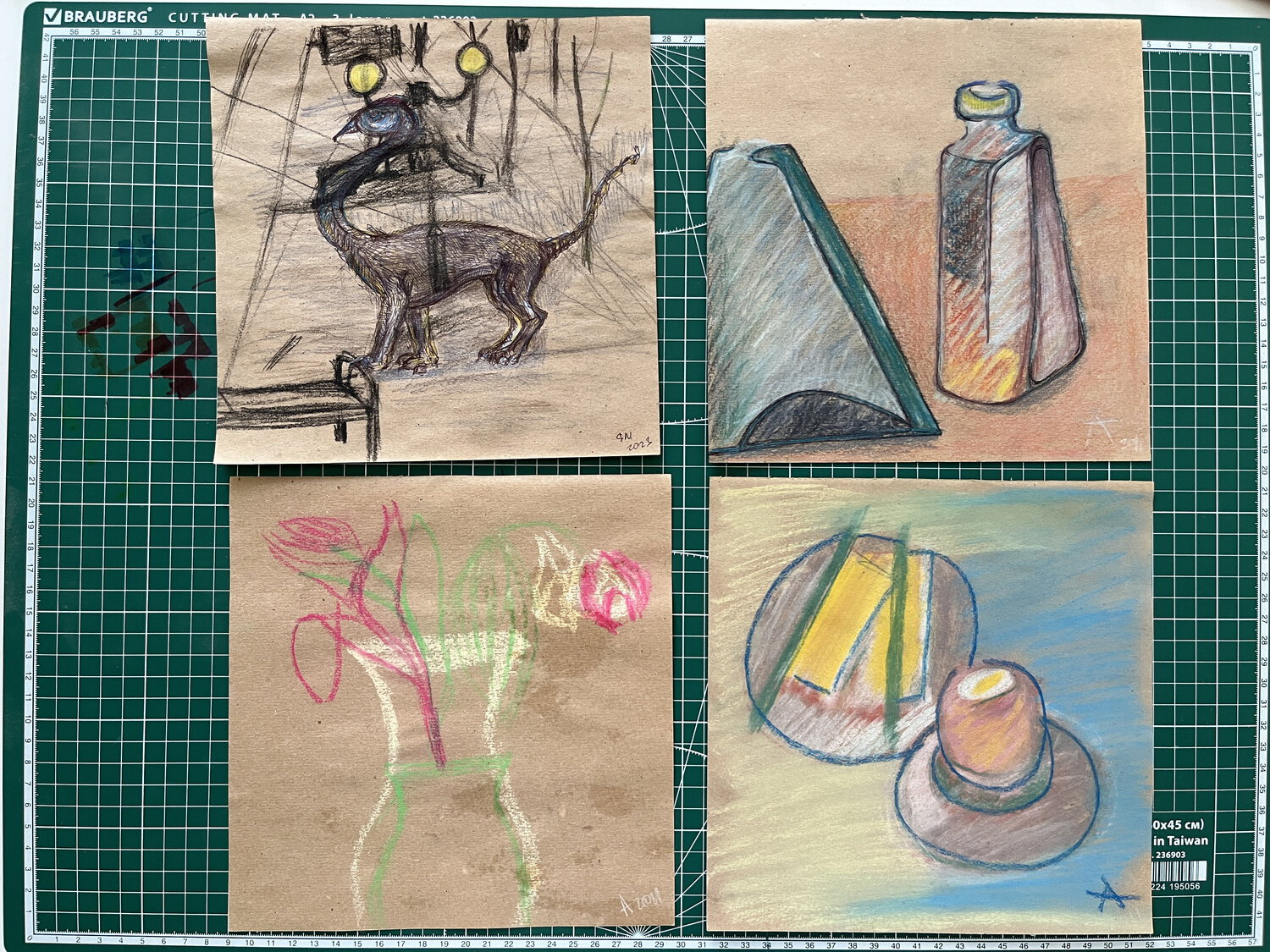 In questo pezzo, ho tessuto un arazzo di sogni surreali con pastelli e matite colorate, portando in primo piano emozioni crude e primitive. Le forme enigmatiche invitano lo spettatore a esplorare un mondo che sfida la realtà, evocando un senso di meraviglia. Attraverso l'armonia dei colori e il fascino dell'ignoto, le mie opere accenderanno la curiosità e l'immaginazione, infondendo in ogni spazio un'energia vibrante e ultraterrena.