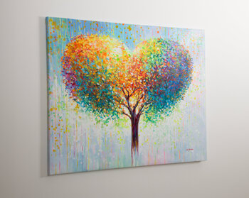 Questo vibrante dipinto originale di Leon Devenice presenta un albero a forma di cuore pieno di colori. Il fogliame dell'albero è un vivace mix di rosso, arancione, giallo, verde, blu e viola, creando una scena gioiosa ed edificante. Le foglie luminose e multicolori formano uno splendido cuore, che simboleggia l'amore e l'unità. Lo sfondo è ornato da punti e strisce colorate, che esaltano l'atmosfera dinamica e allegra.