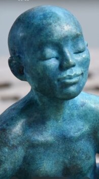 "Il Bambino che Sa" è stato creato come un talismano nella mia vita. Un bisogno impellente di circondarmi di sculture positive. Un'energia pacifica con un tocco di ironia di fronte al nostro mondo travagliato. Mi guarda serenamente, ma il suo debole sorriso deride dolcemente le mie insignificanti preoccupazioni. È quel bambino che eravamo un tempo, quello che ancora dorme dentro di noi.