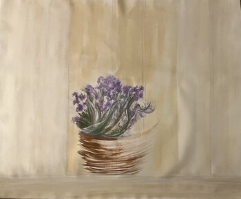 Quest' opera è l'ultimo che creo negli Stati Uniti in attesa di rientrare in Italia. Guardava una pianta su una mensola li, silenzio, buono e calma. Allo stesso tempo pensavo suo perfumo. Iris... delicato e dolce.
