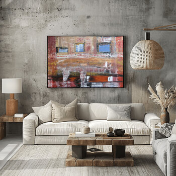 Questo dipinto affascina con la sua vibrante miscela di rossi intensi e tonalità bordeaux terrose, creando un ritmo visivo dinamico che cattura l'attenzione. Le spesse texture acriliche conferiscono una dimensione tattile, intensificando l'emozione della composizione. Quando la luce interagisce con le superfici stratificate, l'opera sembra pulsare di energia e movimento, evocando sentimenti di passione e splendore. Si erge come un capolavoro moderno… che rivela continuamente profondità nascoste, ispirando contemplazione e ammirazione.