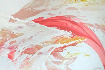 Fresco e frizzante, pieno di gioia e libertà. Yin e Yang. Tempesta e serenità. Ci sono alcune trame, strati e contrasti interessanti in questa pace, ma soprattutto movimento e deliziosi colori rosa e gialli. Luce e porta gioia istantanea e persino felicità allo spettatore.